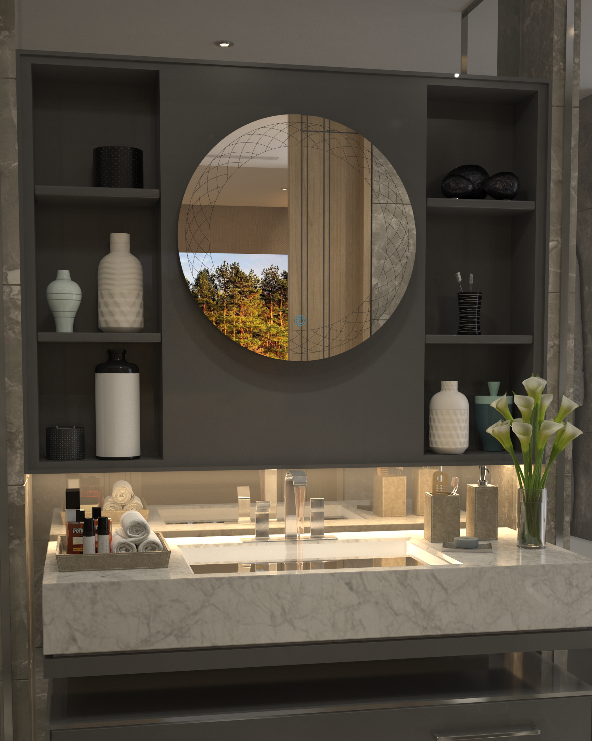 Our mirrors use Samsung chip-based strip LED technology, which offers high efficiency and long life.